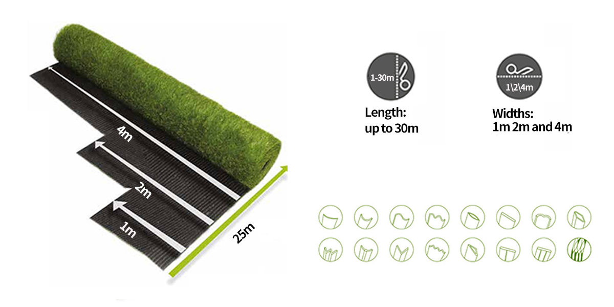 We can provide products in a variety of sizes and can also customize them according to your needs,such as grass height,dtex,density.Grass height can be from 20mm to 50mm.